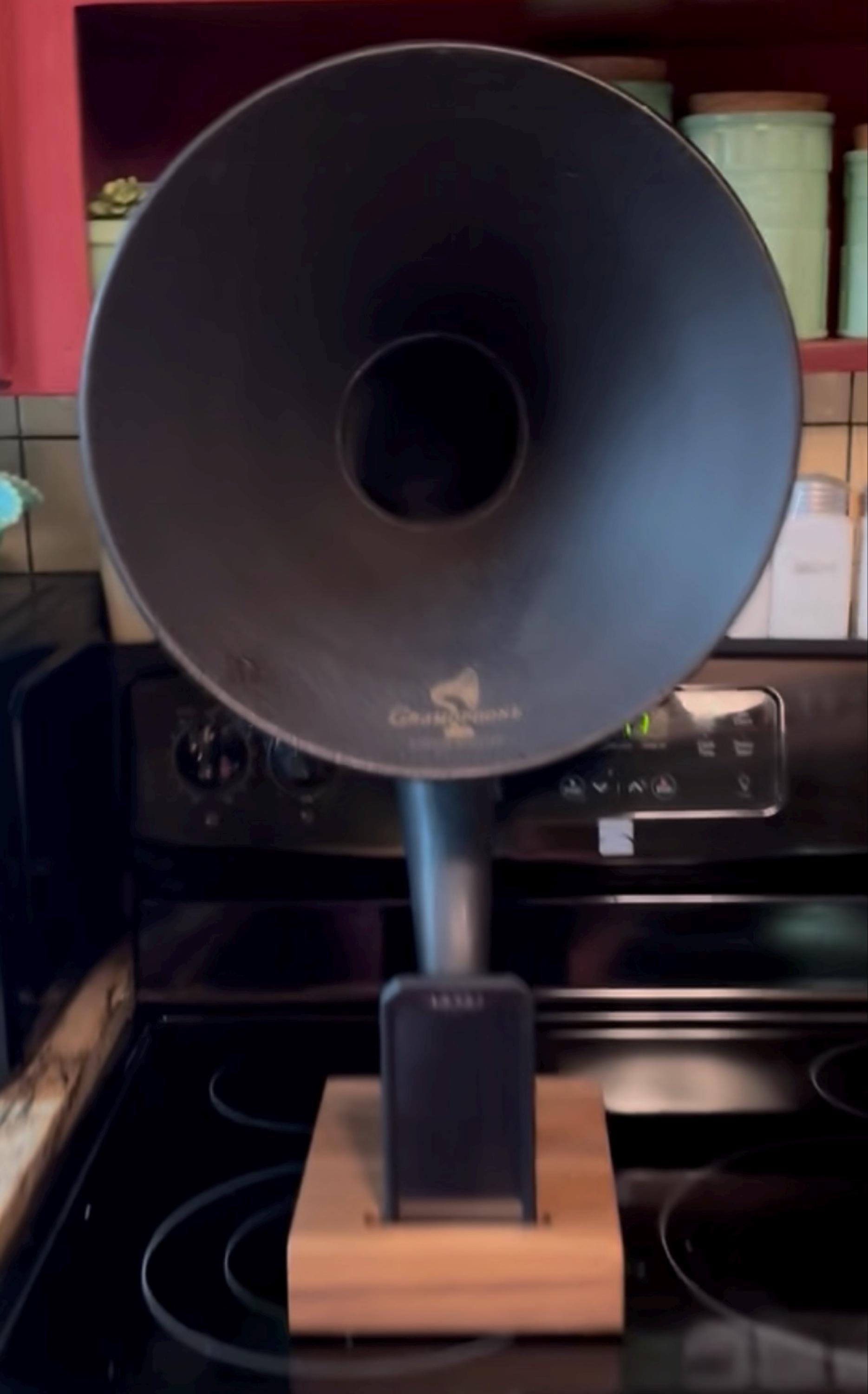 This acoustic speaker from ReAcoustic for your iPhone utilizes a reproduction gramophone horn similar to the ones from the 1920's and is mounted to a Walnut Base. They require no batteries, cords, electronics or power source. They are completely acoustic! Simply place your iPhone in the slot and enjoy tunes of yesterday or today with an amazing vintage sound. Great conversation piece.
